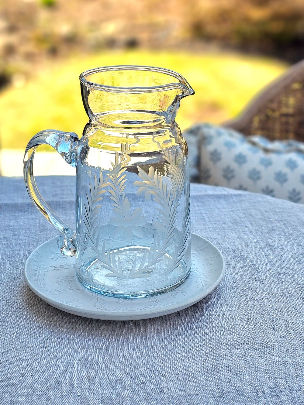 Click here for French Country Etched Glass Pitcher