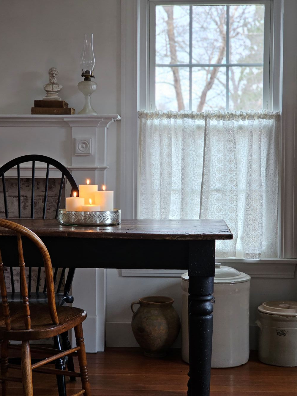Farmhouse style with a vintage twist inspired by antique shop finds and the New England farming town where we live.