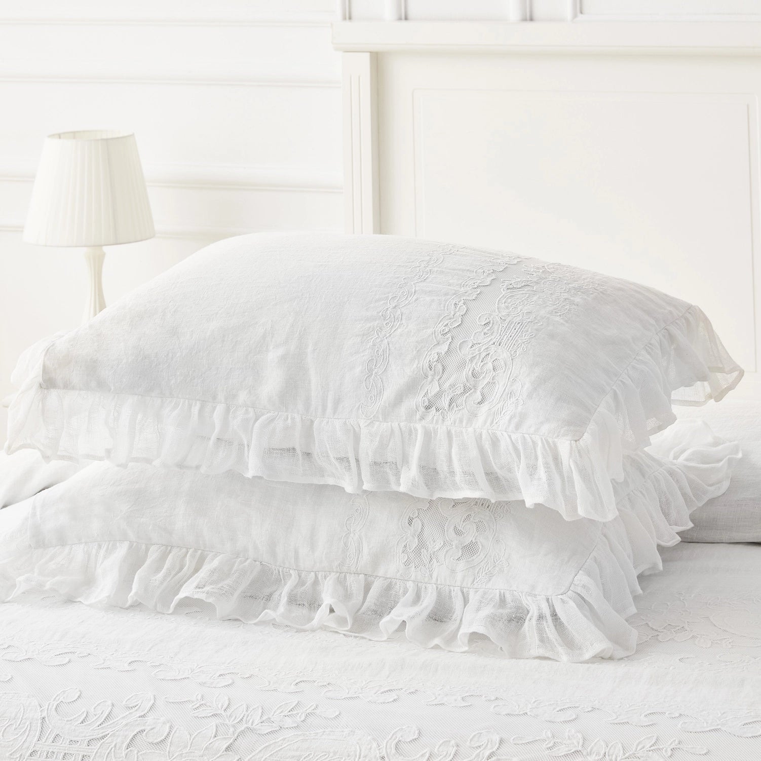 Click here for Vintage White Oversized Ruffled Edge Pillow Sham Set