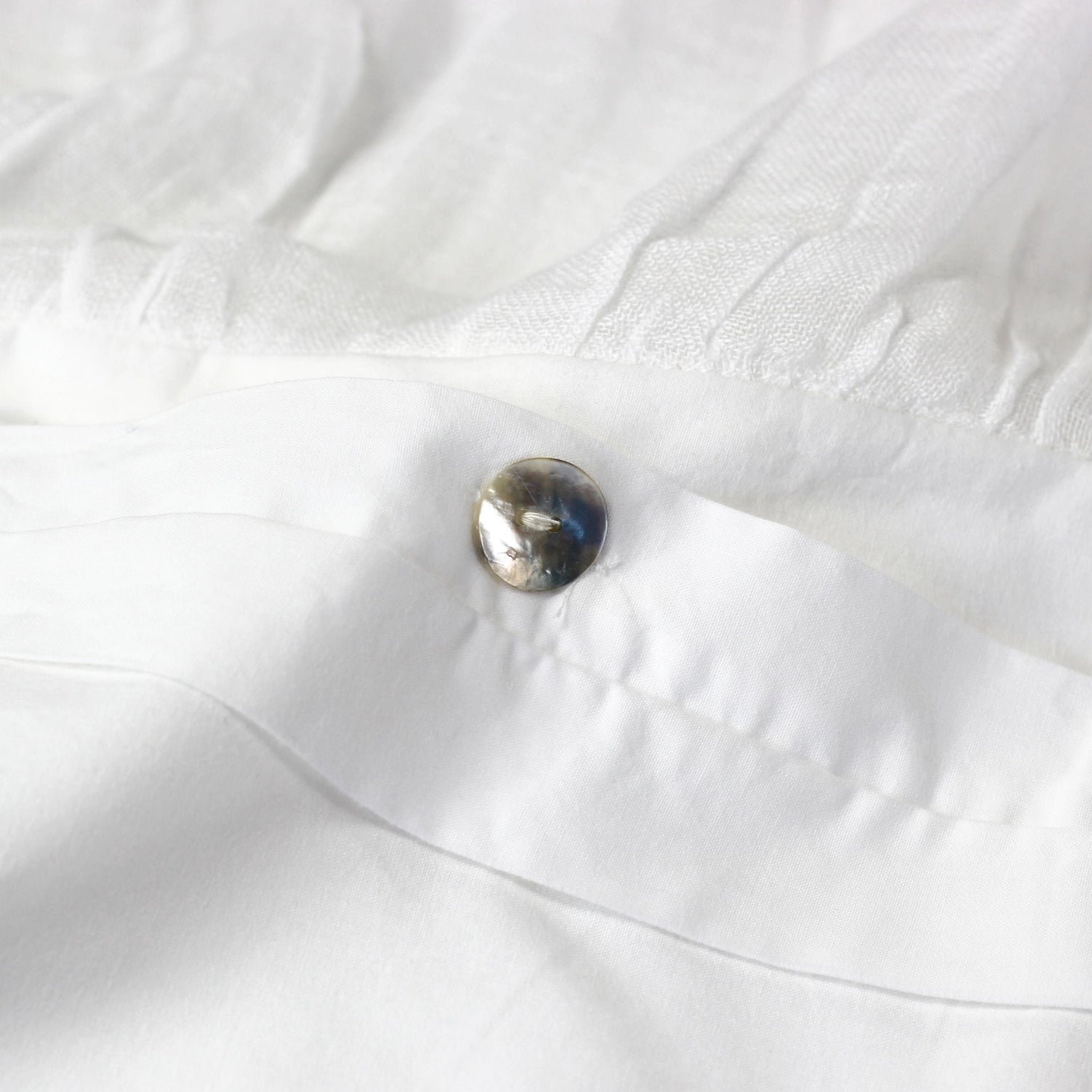 Hidden shell button closure on bottom of duvet cover