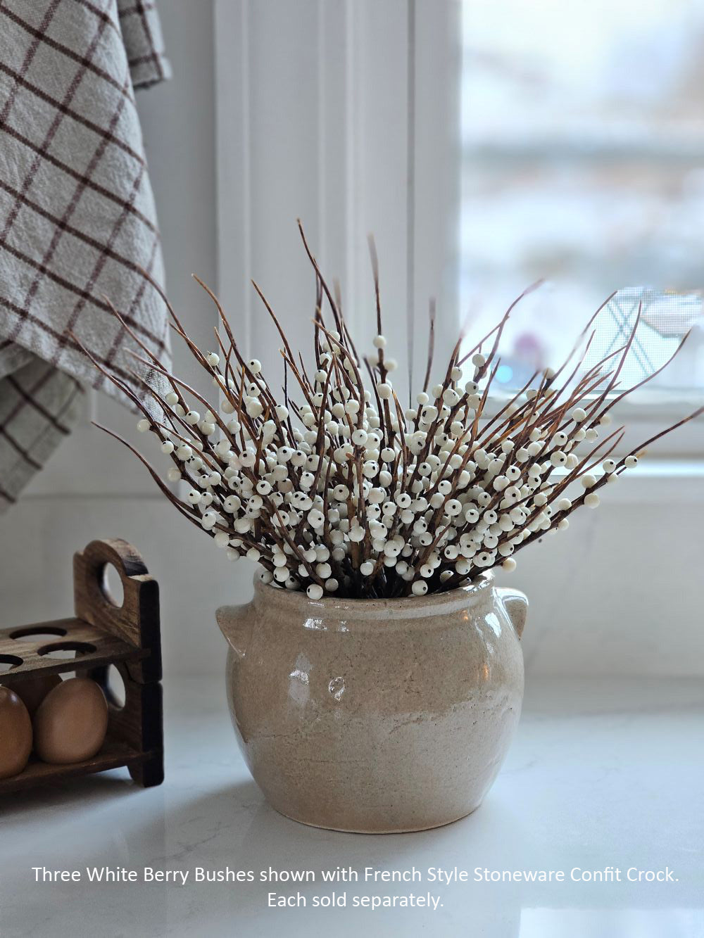 This antique reproduction French Style Stoneware Confit Crock is inspired by salt glazed pottery from early 20th century, found in farmhouses throughout the US and Europe. This sturdy, rustic crock has an aged beige patina, making this piece a perfect accent for those who love the perfectly imperfect look of vintage style home decor. Use to store cooking utensils or display your favorite flowers. (Accents and Flowers sold separately) 6.25” Diam x 5”H
