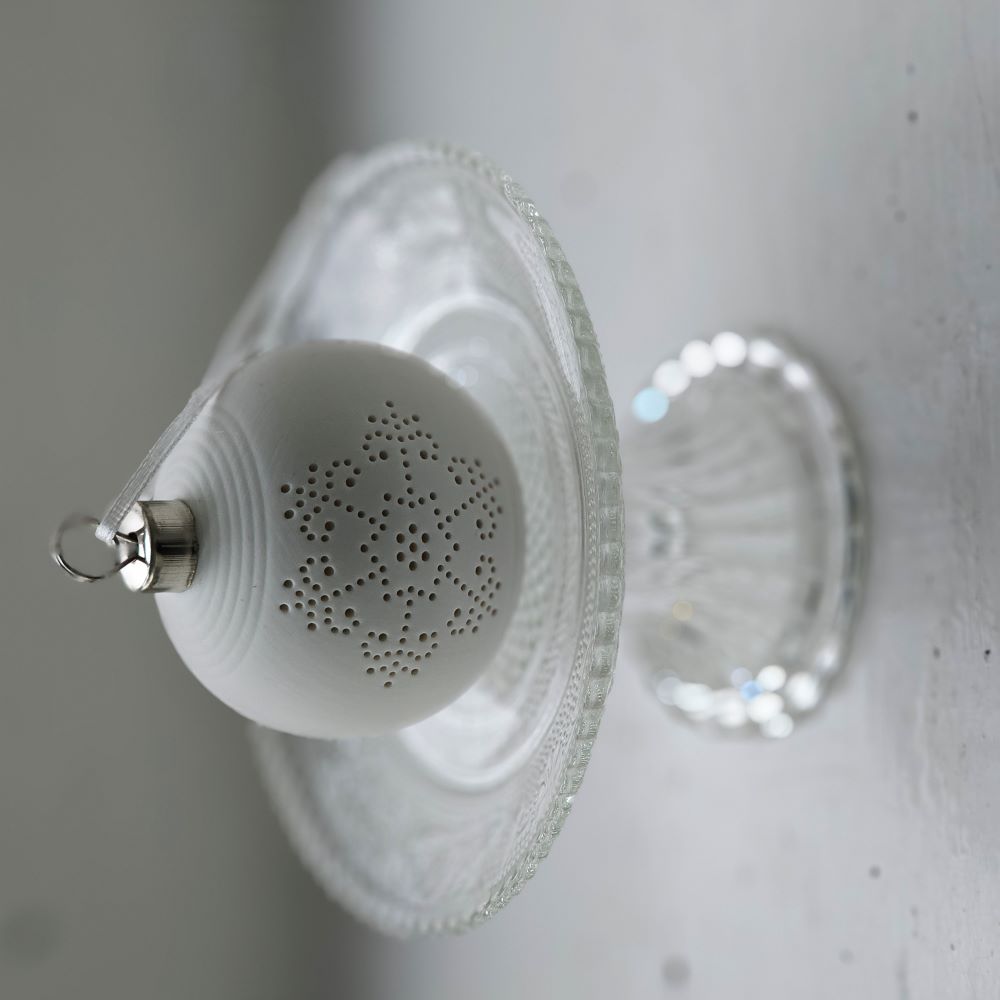 The Lighted Snowflake Ornament Set brings an enchanted winter touch to your home. Features a crisp, white un-glazed ceramic, lending a quiet elegance with an organic, minimalist feel. The snowflake design has a lace-like quality. Each has a flat bottom, so it can easily sit on a shelf or hang from a tree. Create a beautiful table setting by adding a snowflake ornament to each plate with a name tag. This ornament looks beautiful even when not glowing with the warm LED light. Requires two LR44 batteries (included). Set of three, each is 2.75" diam