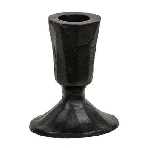 The understated elegance of our Blacksmith Taper Candle Holder lends an historic charm to any room. This artfully crafted black metal piece captures the essence of traditional metalwork with its hand-forged aesthetic, bringing timeless character to any space. The refined minimalist silhouette complements both contemporary and classic interiors, while its sturdy construction accommodates standard taper candles. A sophisticated accent that whispers rather than shouts. Taper candle not included. 2.5"Diam x 3.25"H