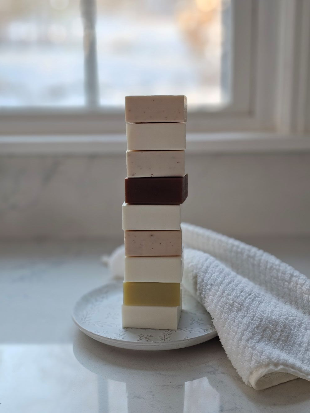 Indulge in nine exquisite French-milled soaps, each crafted with plant-based ingredients, shea butter, and essential oils. This curated sampler showcases an array of botanical fragrances, from classic holiday scents to unexpected aromatherapy blends. Every 1.9 ounce bar delivers a luxurious lather while nourishing skin with gentle moisture. Wrapped in elegant, decorative patterns, this collection serves as an ideal gift for the discerning host or a thoughtful stocking addition. Experience the refined simplicity of artisanal soap craftsmanship. Set of nine 1.9 oz soaps