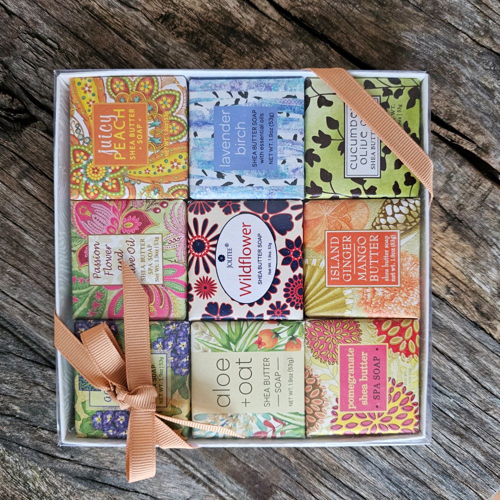 Indulge in nine exquisite French-milled soaps, each crafted with plant-based ingredients, shea butter, and essential oils. This curated sampler showcases an array of aromatherapy fragrances, from classic scents to unexpected botanical blends. Every 1.9 ounce bar delivers a luxurious lather while nourishing skin with gentle moisture. Wrapped in elegant, decorative patterns, this collection serves as an ideal gift. Experience the refined simplicity of artisanal soap craftsmanship. Set of nine 1.9 oz soaps